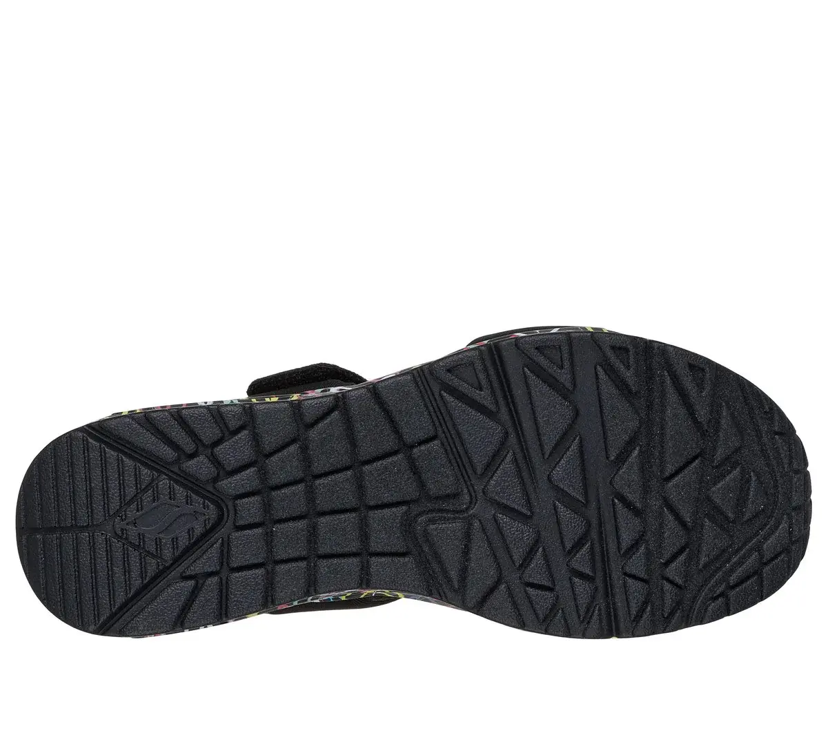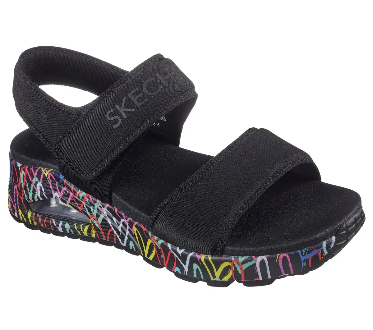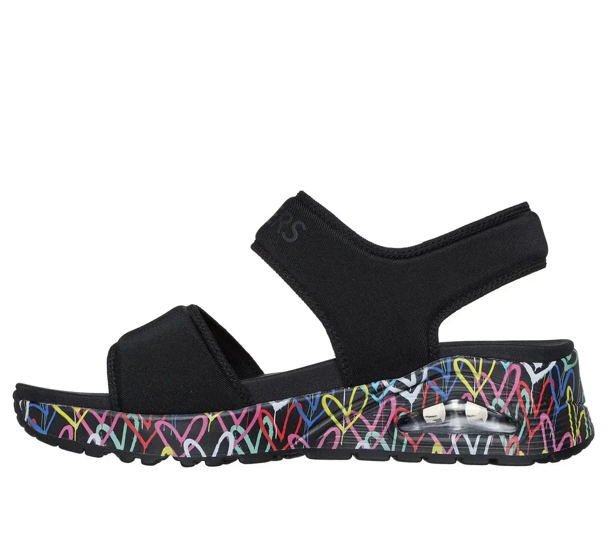 Internationally renowned muralist James Goldcrown brings his iconic #Lovewall heart designs to Skechers in this inspiring collaboration. Show your creative style with Skechers Street™ x JGoldcrown: Uno – Sea Of Love. This fashion sandal features a print of the artist’s signature heart design on the midsole and a woven fabric upper with an adjustable slingback strap. The design is complete with a cushioned Yoga Foam® footbed and a visible Skech-Air® airbag midsole.