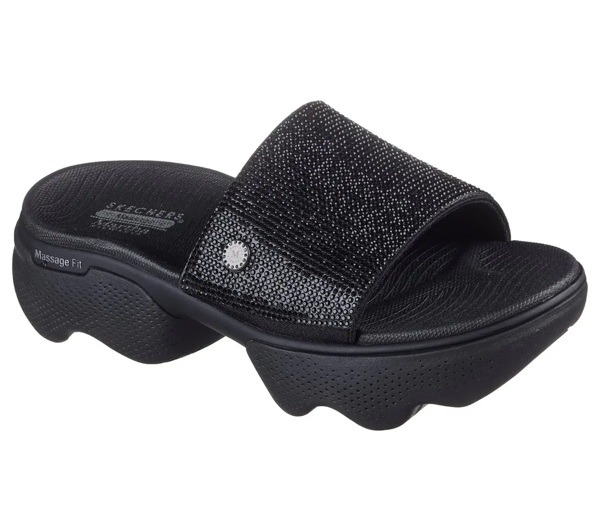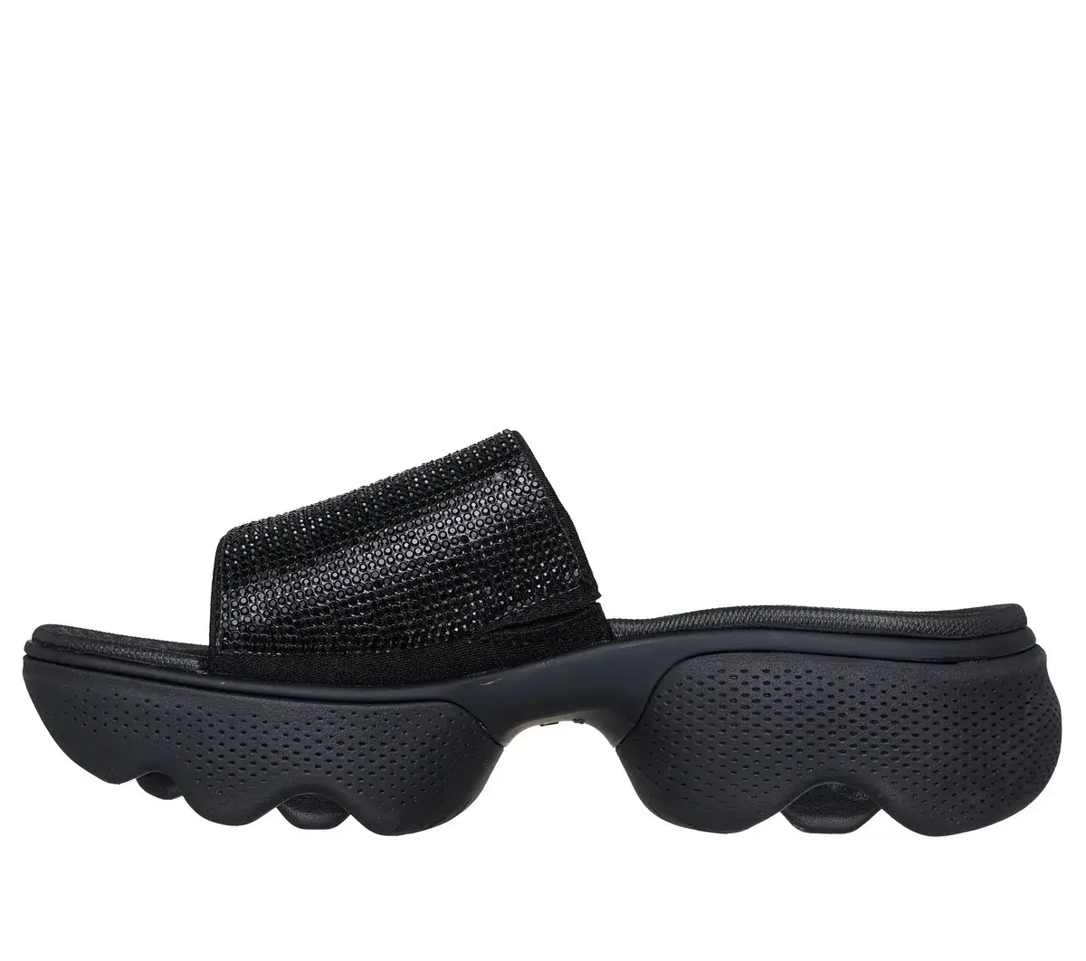 Celebrated lifestyle expert, Martha Stewart, delivers her one-of-a-kind touch to Skechers in this spirited collaboration. Shine bright in innovative comfort with Martha Stewart x Skechers: Massage Fit Edge – Radiance. This vegan slide sandal features a rhinestone-covered single crossband upper, a contoured Goga Mat® footbed with Arch Comfort® for added support, and our unique Massage Fit™ midsole that gently massages your feet with every step.