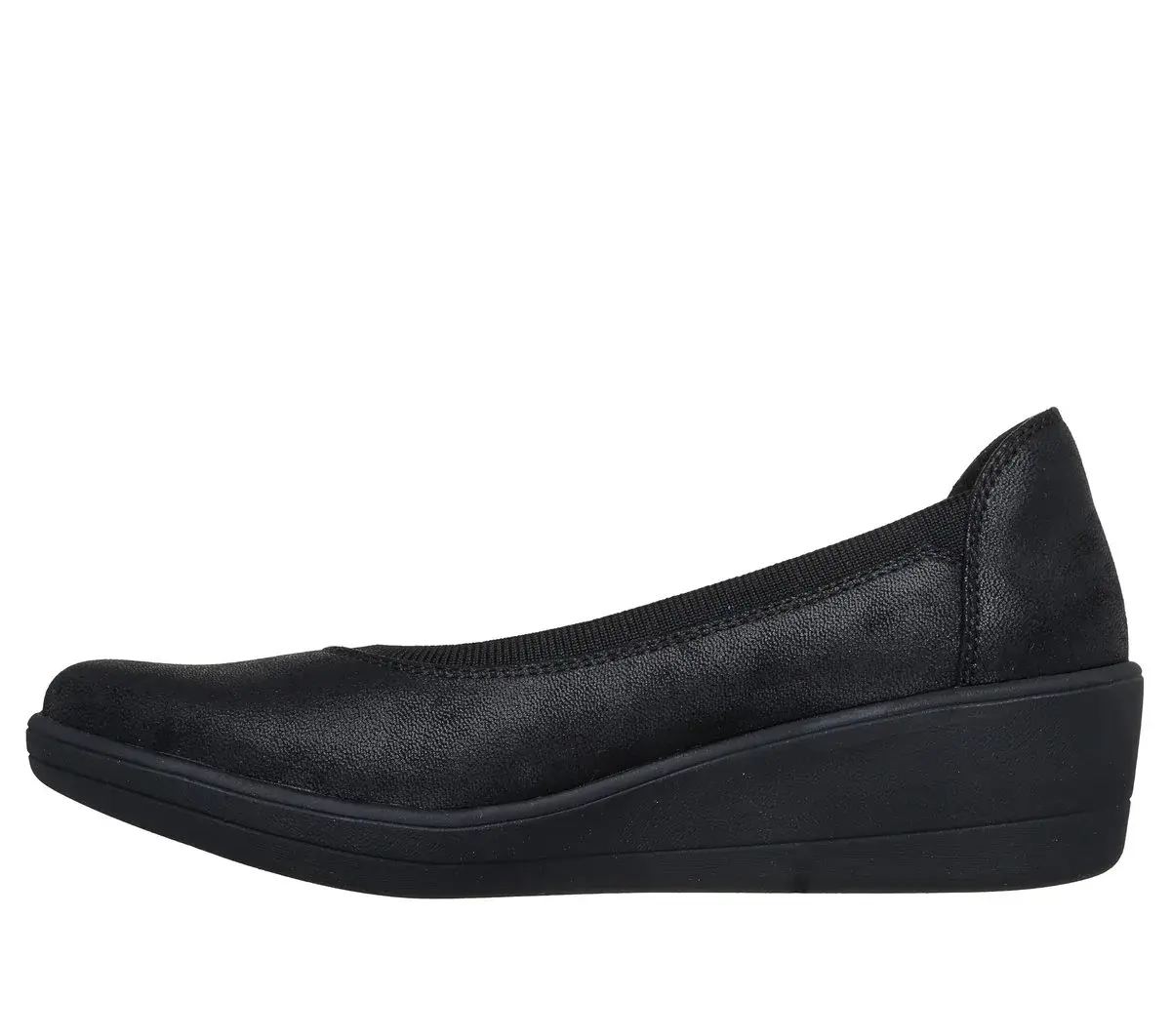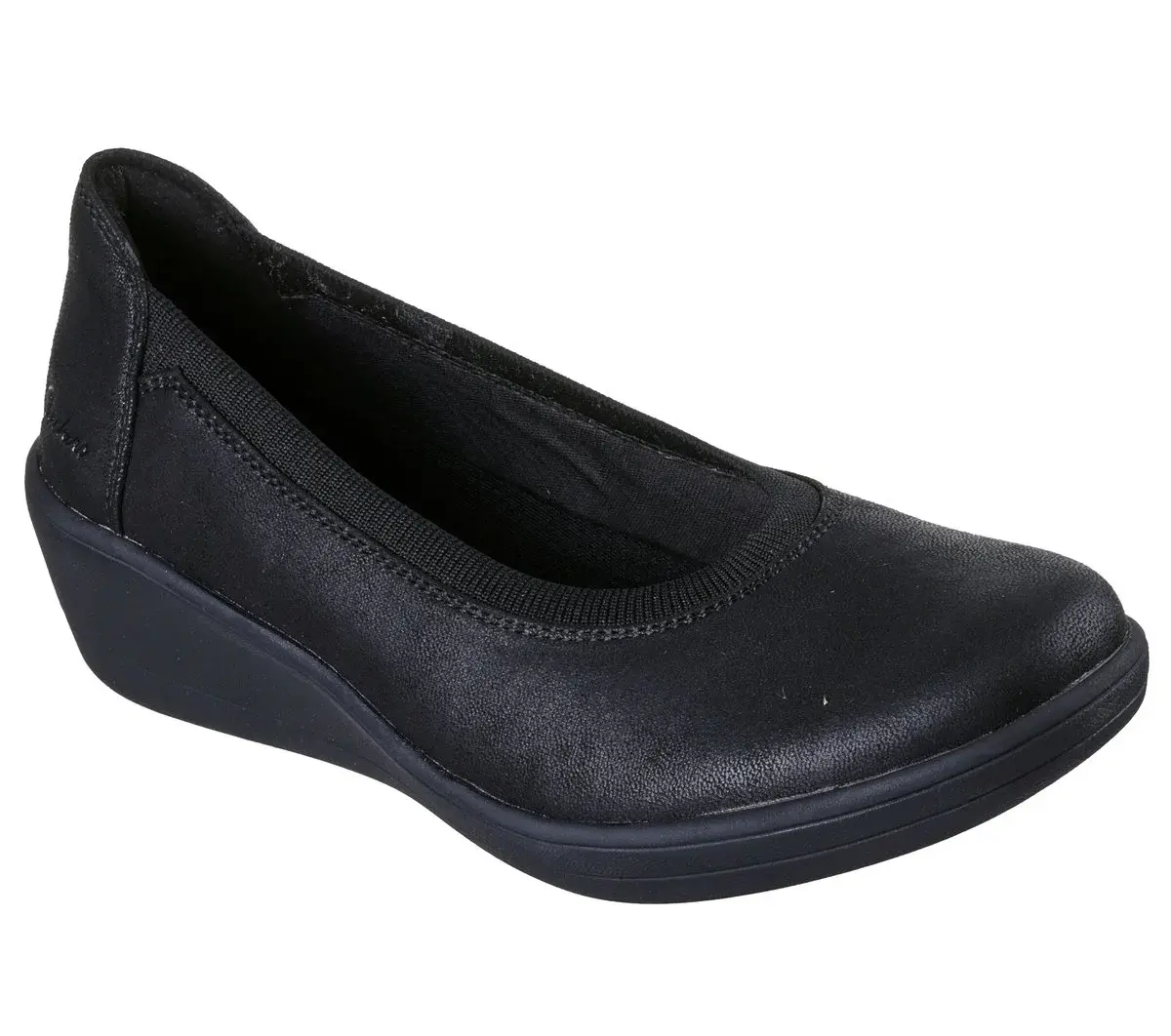 Elevate your everyday look in lifted comfort with Skechers Relaxed Fit®: Newport Wedge. This casual vegan skimmer features a Stretch Fit® microleather upper, a tonal wedge midsole, and our signature Skechers Air-Cooled Memory Foam® insole for all-day comfort.