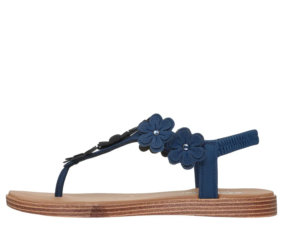 Beachy and breezy is the look wearing Skechers Cali® Summer Cove – Beach Bloom. This slingback thong sandal features a vegan leather upper with rhinestone embellished floral cutouts and a Luxe Foam® cushioned comfort footbed.