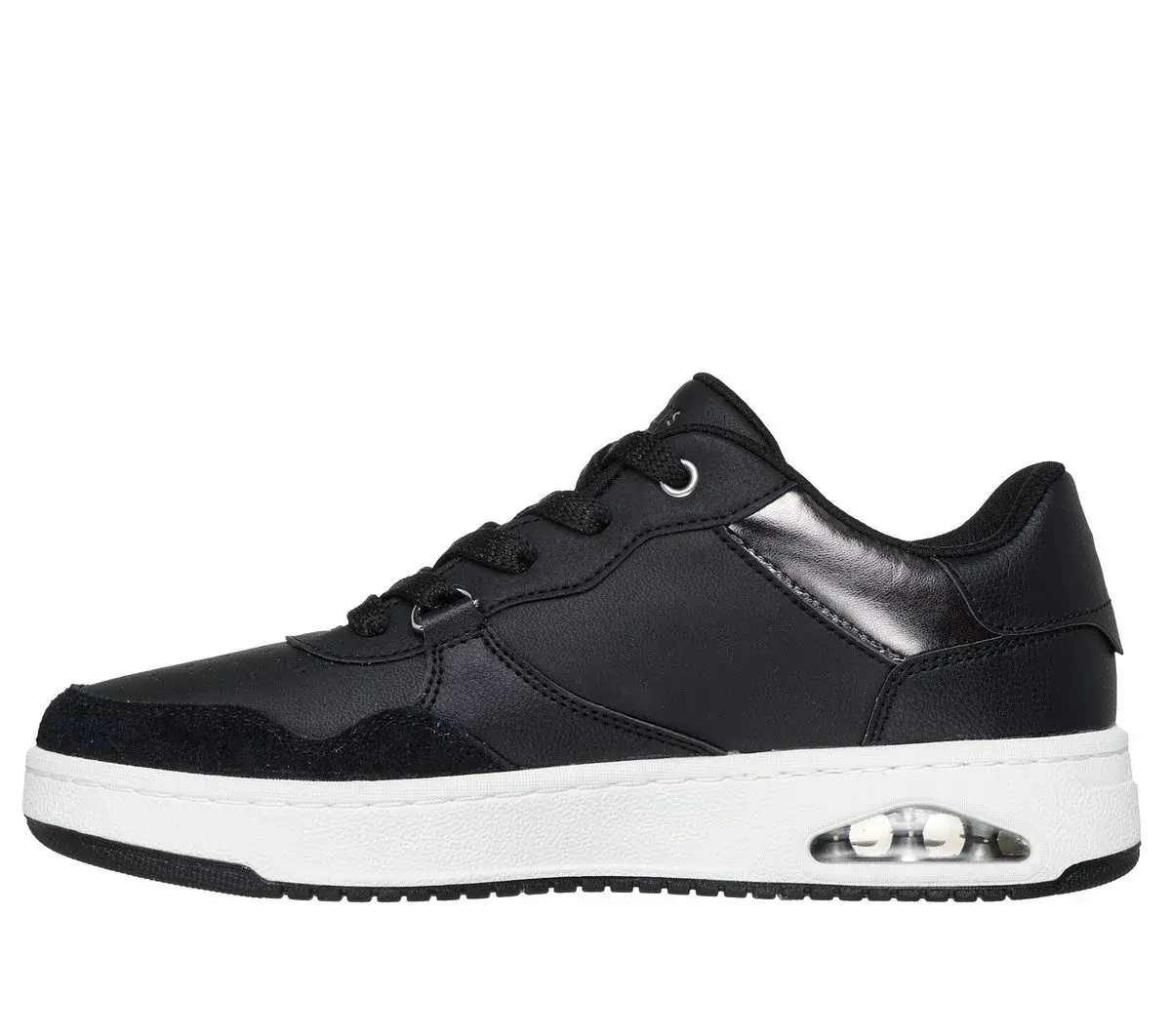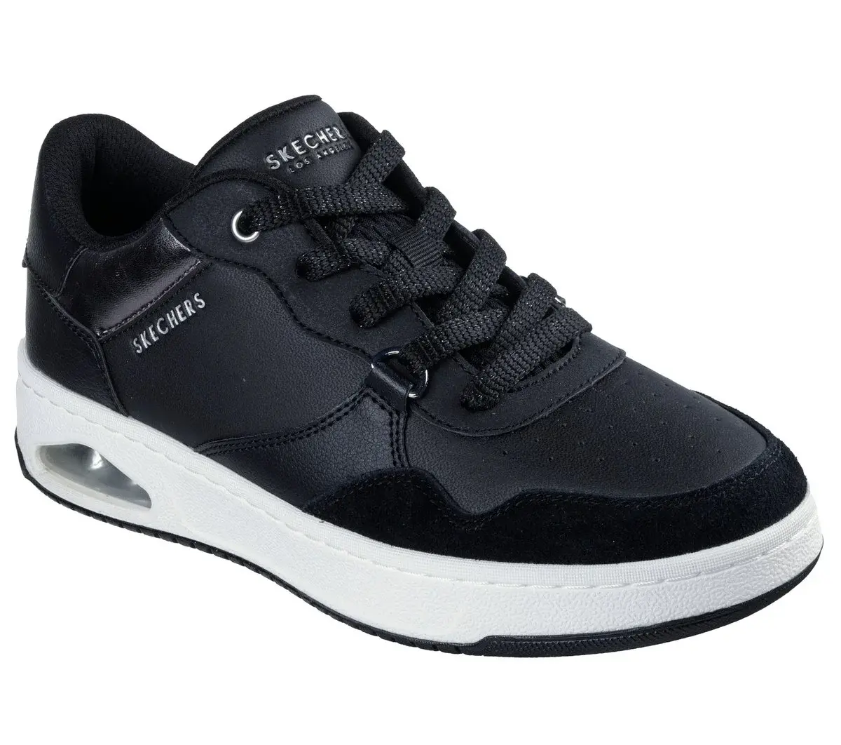 Lace into standout style and superior comfort with Skechers Street™ Uno CTL – Subtle Shimmer. This court-style fashion design features a laced duraleather and suede overlay upper with metallic detail, a cushioned Air-Cooled Memory Foam® insole, and a visible Skech-Air® airbag midsole.