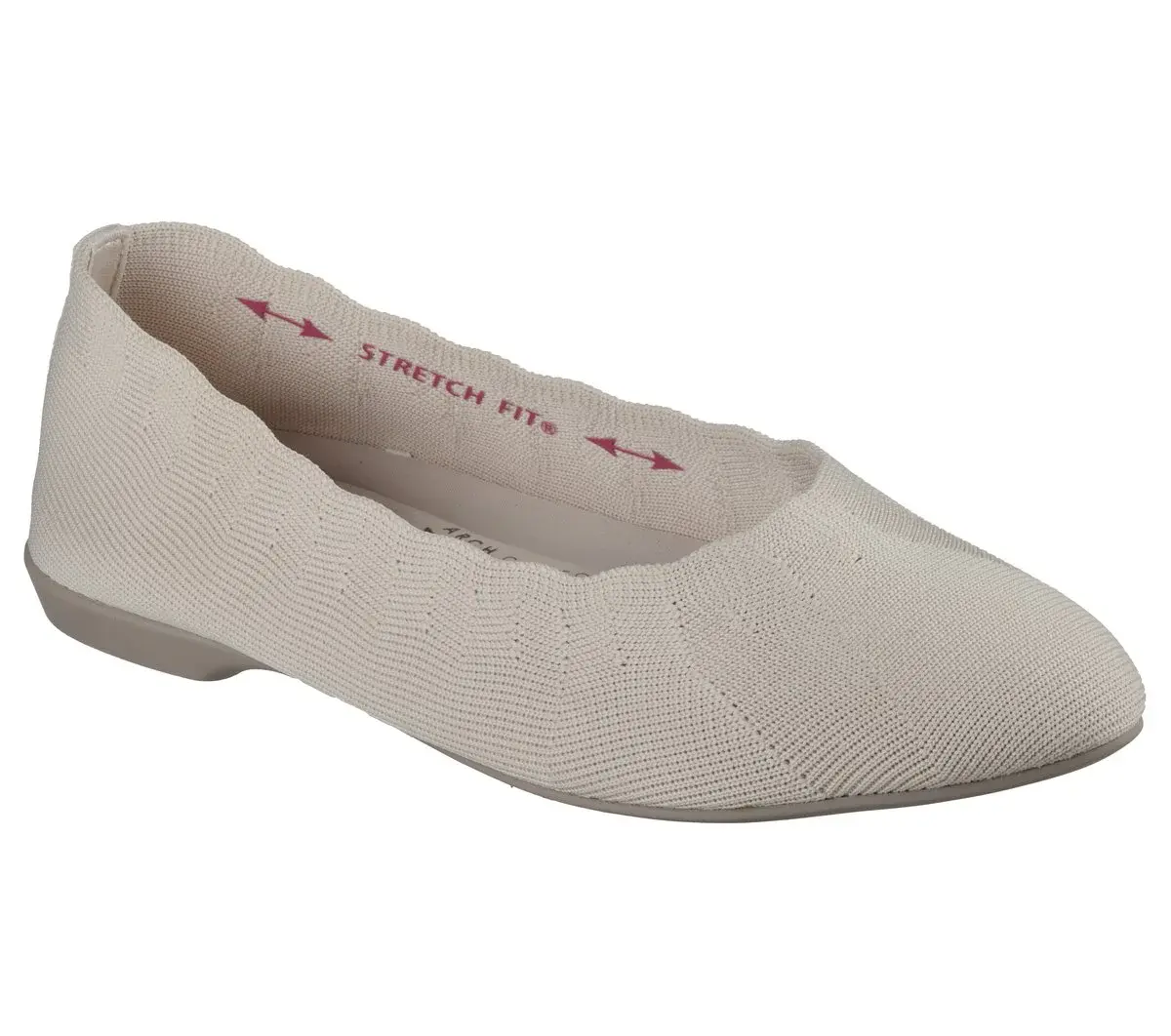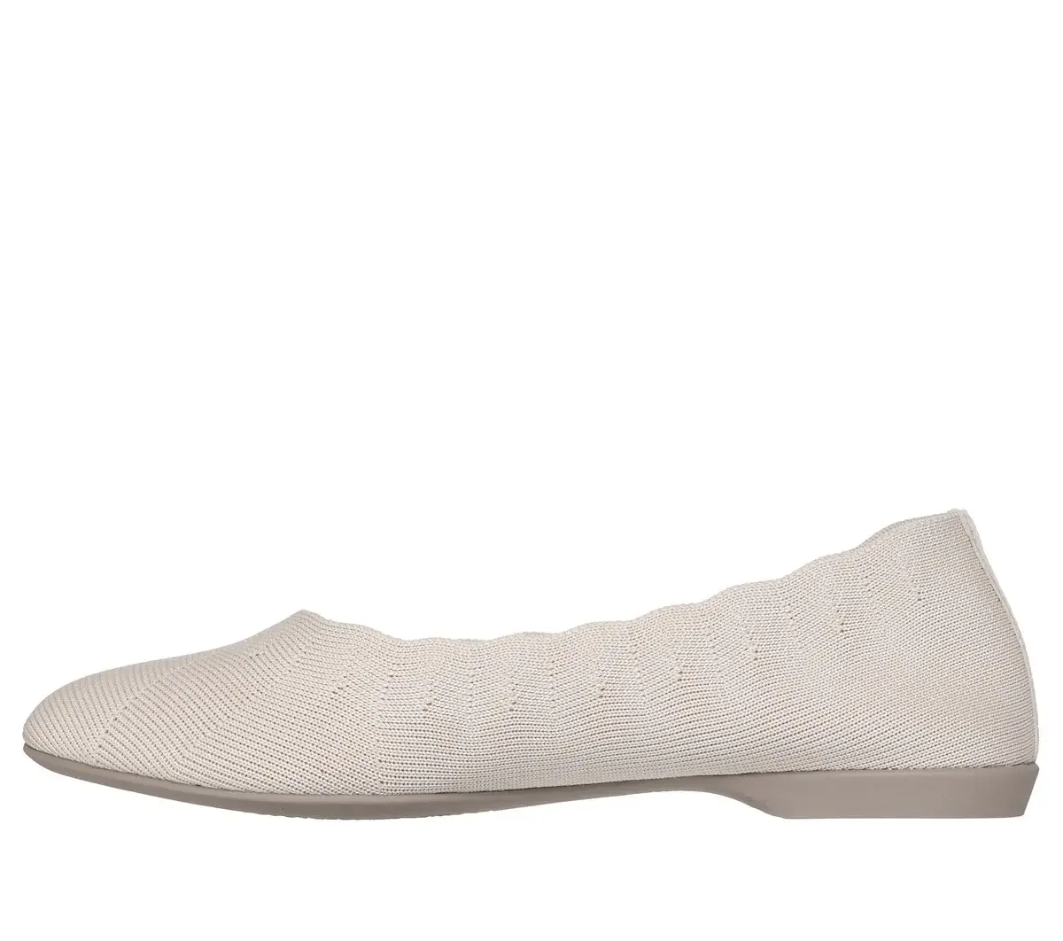 Gorgeous textured style becomes an eternal favorite in Skechers Cleo® Style. Designed with recycled materials, this Stretch Fit® vegan skimmer features a knit upper with scalloped collar trim and a cushioned Skechers Air-Cooled Memory Foam® insole. Our Planet Matters®: Good for your feet. Good for the world.®