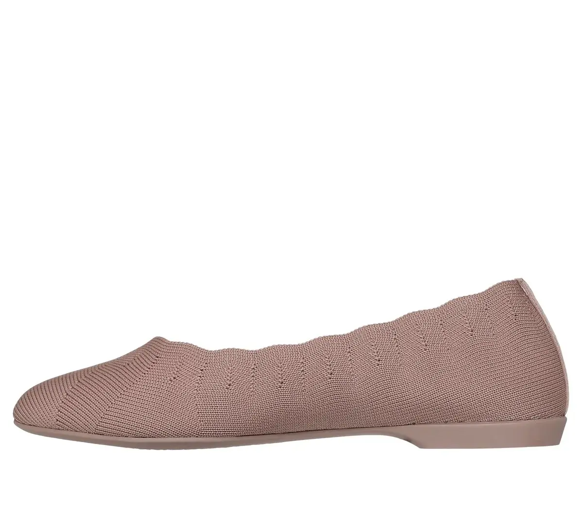Gorgeous textured style becomes an eternal favorite in Skechers Cleo® Style. Designed with recycled materials, this Stretch Fit® vegan skimmer features a knit upper with scalloped collar trim and a cushioned Skechers Air-Cooled Memory Foam® insole. Our Planet Matters®: Good for your feet. Good for the world.®