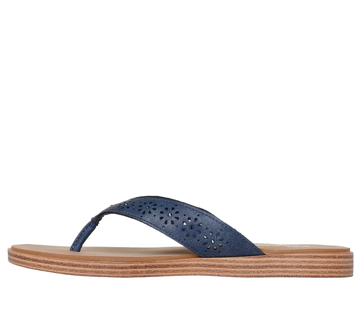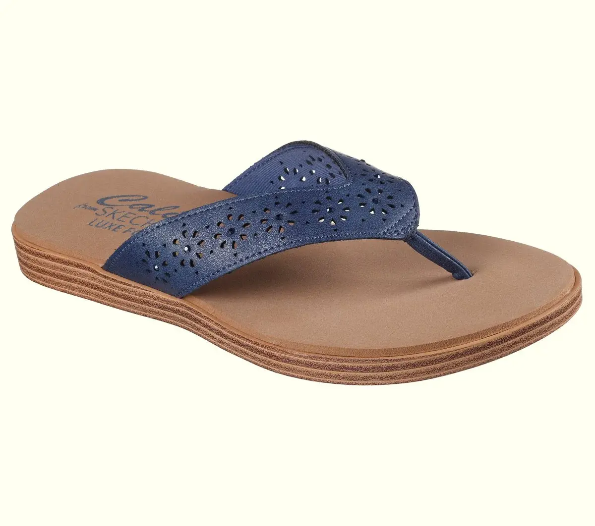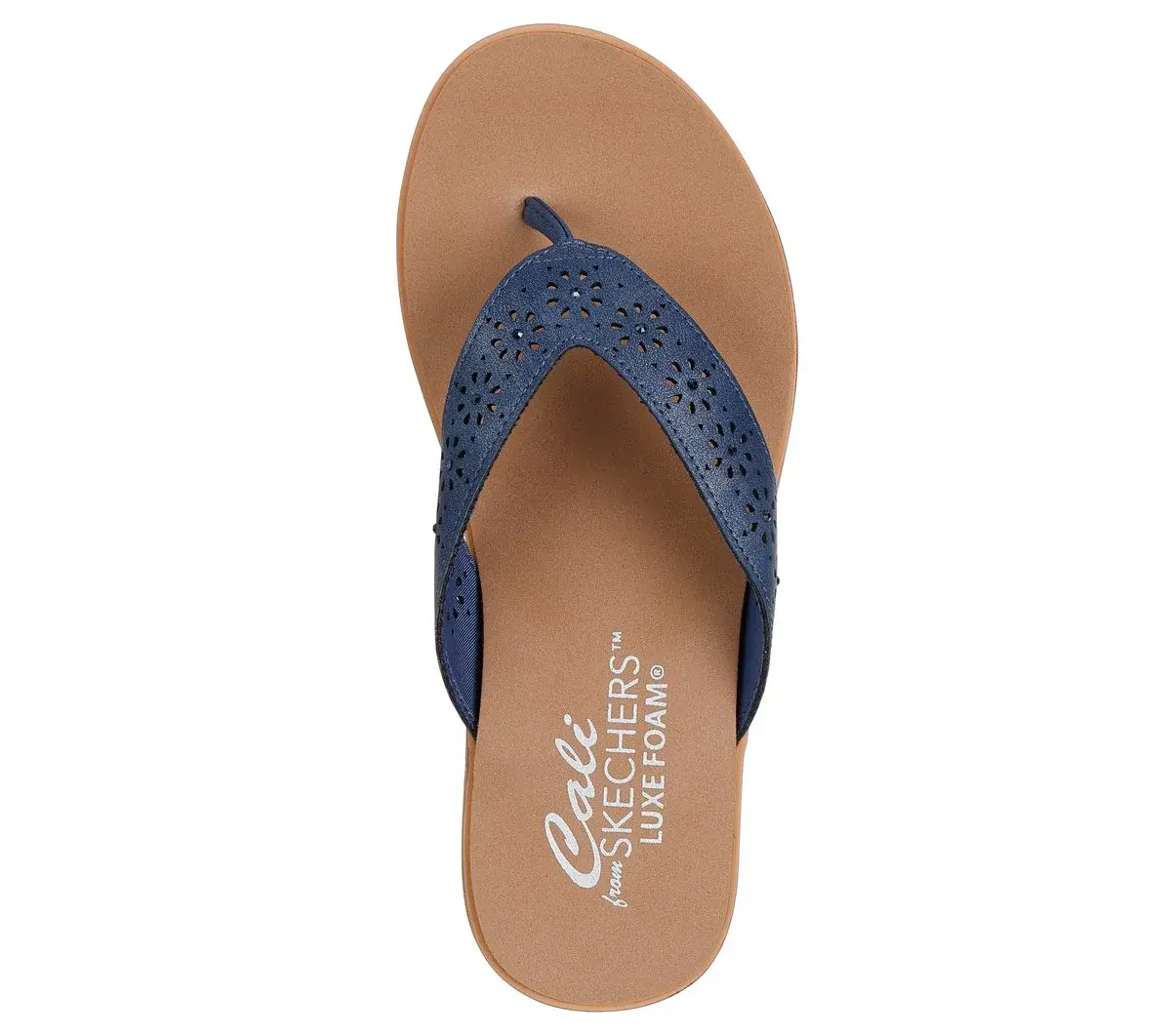 Beachy and breezy is the look wearing Skechers Cali® Summer Cove. This vegan thong sandal features a synthetic upper with floral cutouts and a Luxe Foam® cushioned comfort footbed.