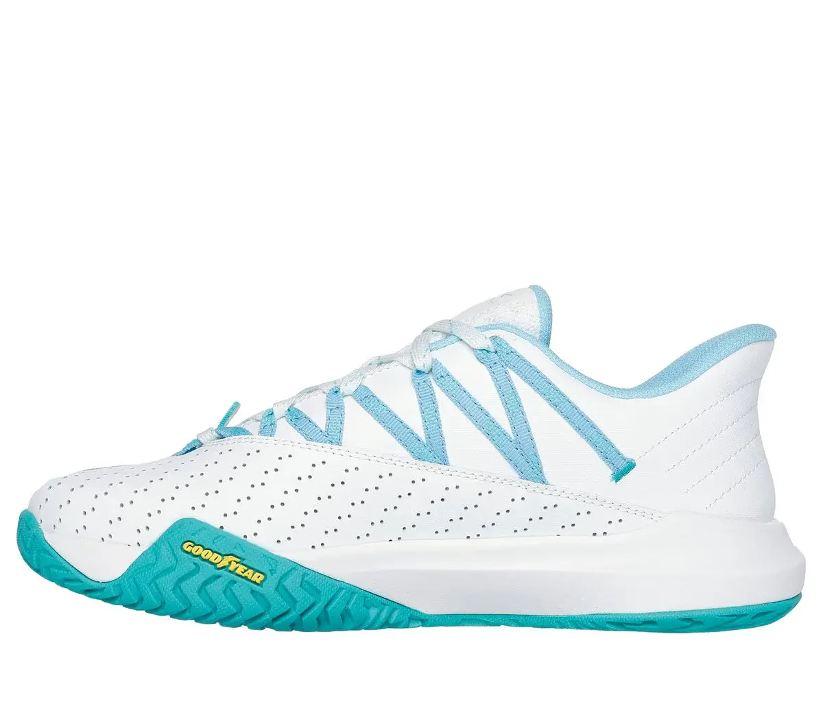 Step up your game with Skechers Viper Court Rally™. This lace-up Pickleball shoe features a mesh and perforated leather overlay upper with a lightweight Move Foam™ insole. The design is complete with a Goodyear® Gold compound outsole that’s built for increased durability to allow the elite player to perform controlled slides specifically on the pickleball court surface.