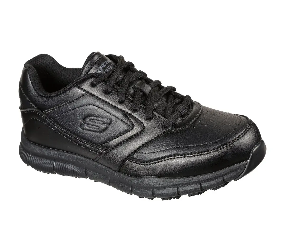 Surefooted comfort and safety combine in Skechers Work Relaxed Fit®: Nampa – Wyola SR. This slip-resistant design features a smooth synthetic leather upper with a lace-up front and a cushioned Skechers Memory Foam™ insole.