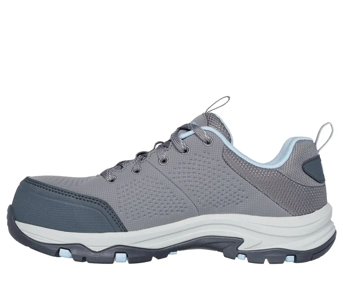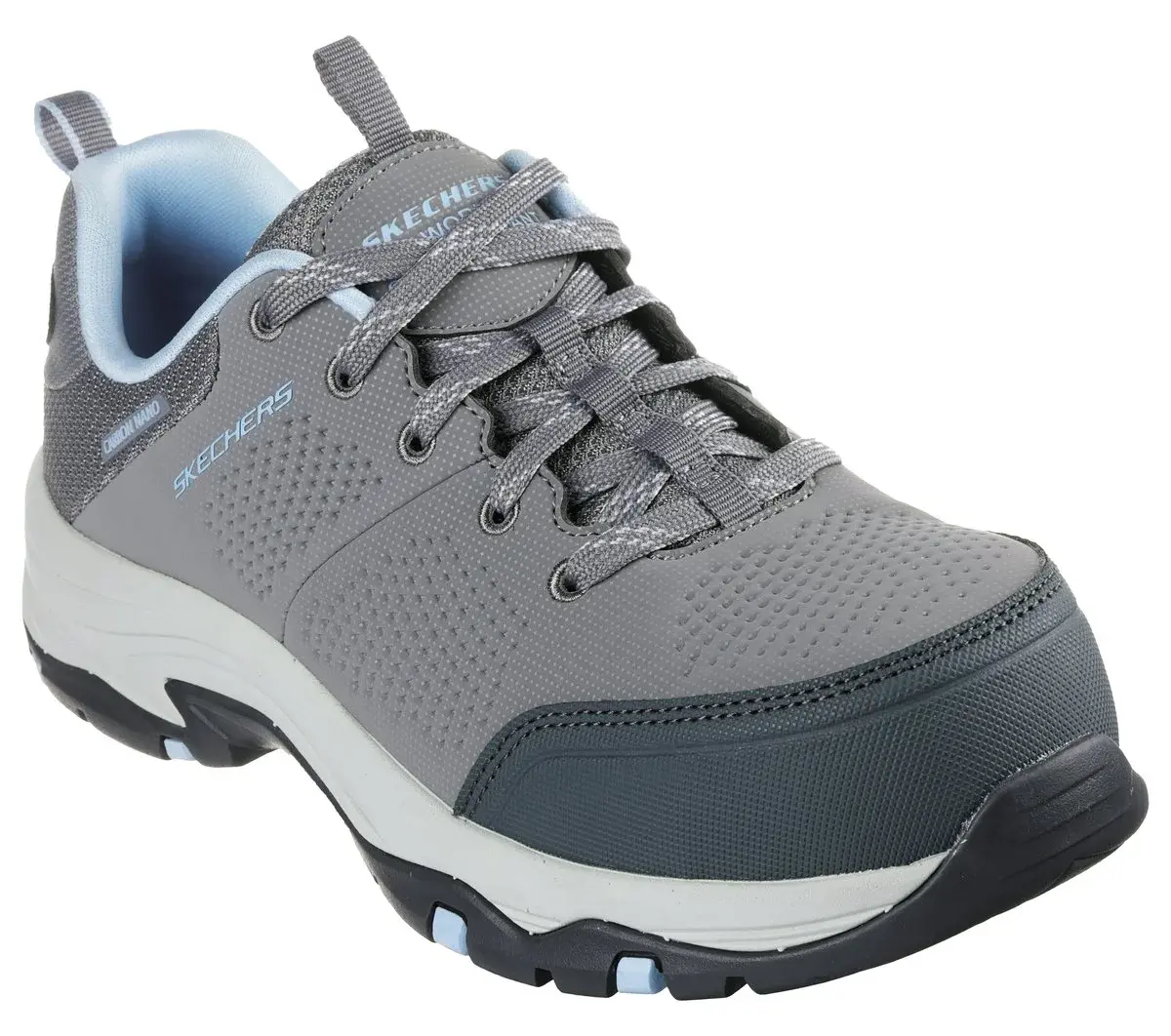 Surefooted comfort and safety deliver in Skechers Work™ Trego – Astallet CT. This lace-up hiker inspired design features a synthetic and woven fabric upper with a cushioned Skechers Air-Cooled Memory Foam® insole and a carbon nano composite toe.