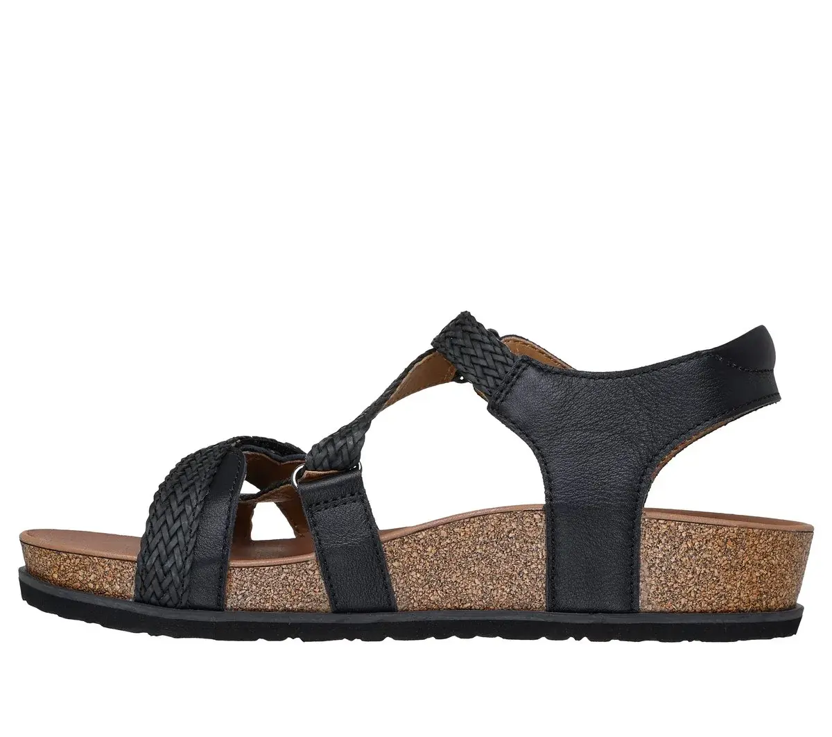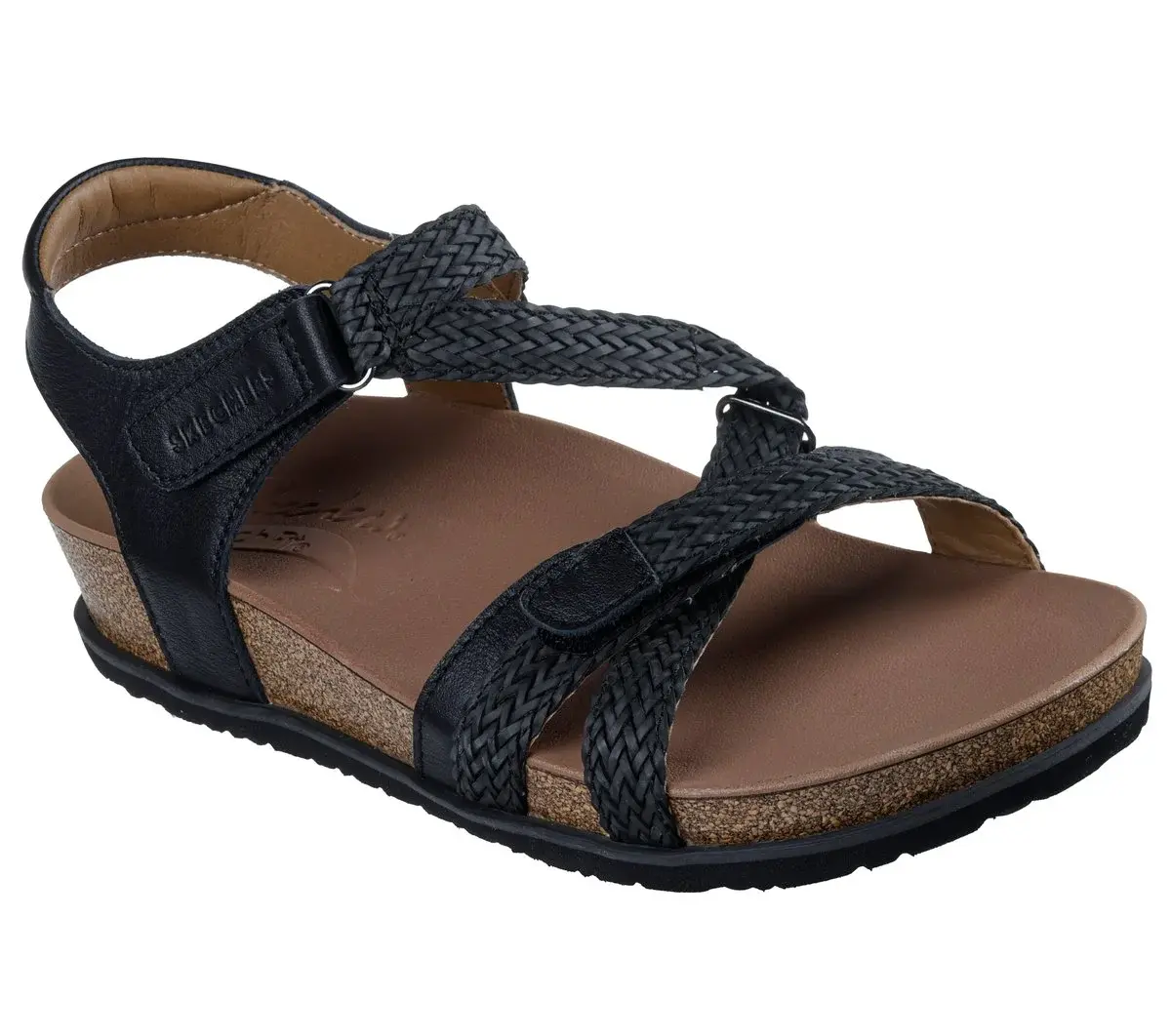 Unwind in stylish warm-weather comfort wearing Skechers Arch Fit® Granola Slim – True Vibe. This strappy slingback sandal has been granted the APMA Seal of Acceptance and features a woven leather upper with two adjustable hook-and-loop closures and a supportive Arch Fit® footbed with Luxe Foam® cushioning.