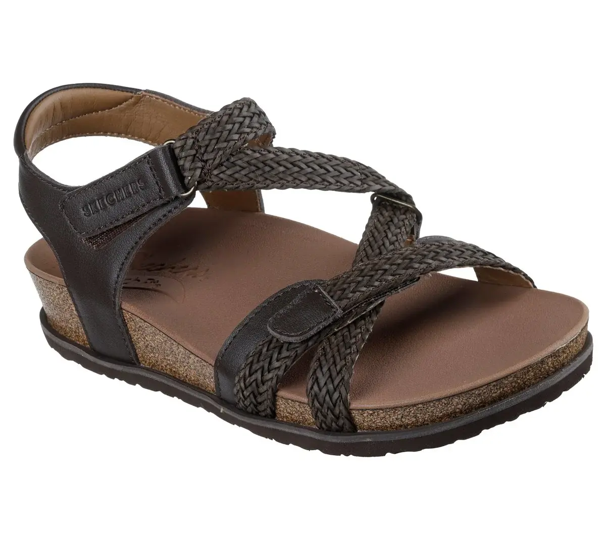 Unwind in stylish warm-weather comfort wearing Skechers Arch Fit® Granola Slim – True Vibe. This strappy slingback sandal has been granted the APMA Seal of Acceptance and features a woven leather upper with two adjustable hook-and-loop closures and a supportive Arch Fit® footbed with Luxe Foam® cushioning.