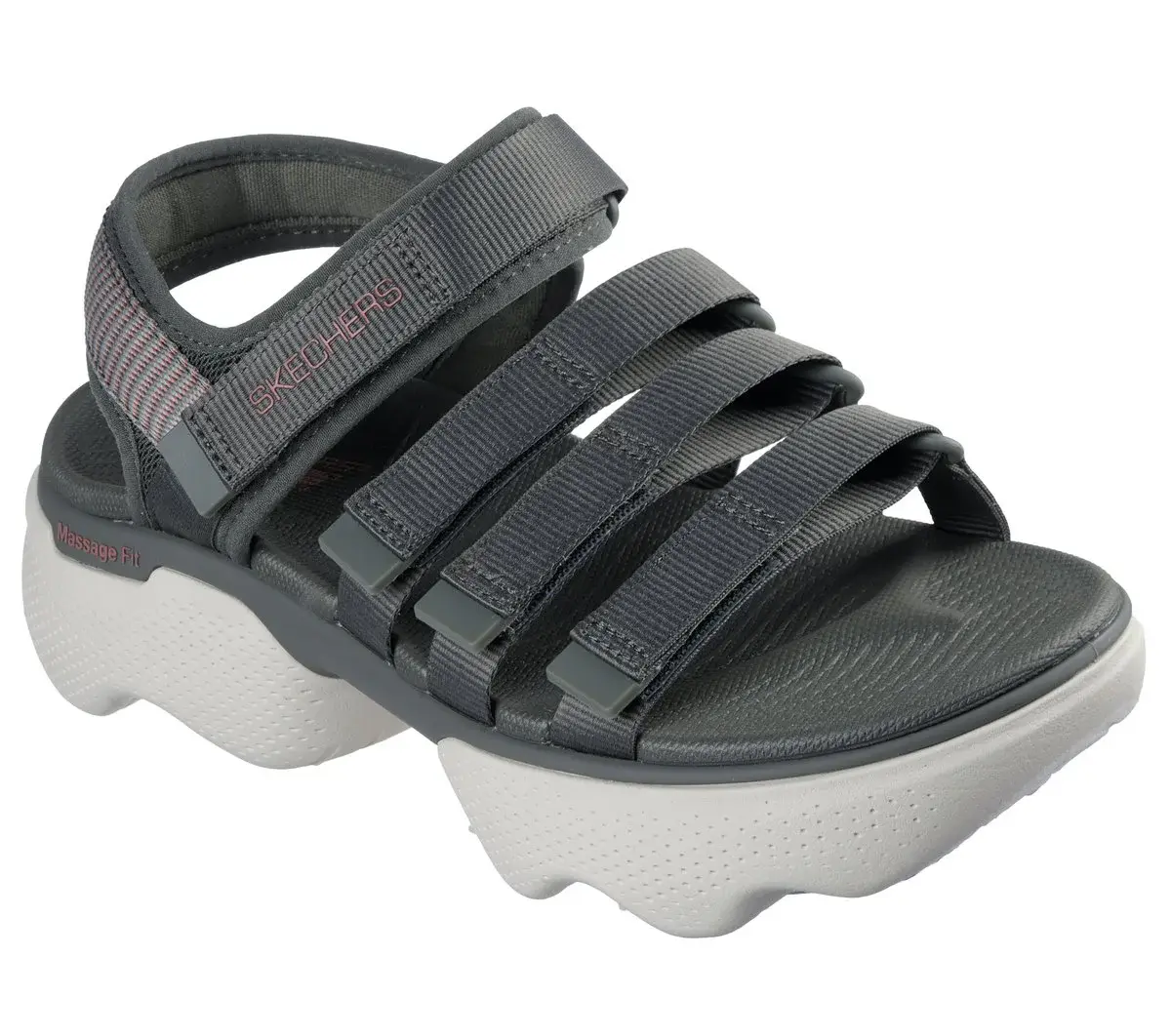 Make every step count for incomparable comfort and summery style with Skechers: Massage Fit Edge – Lysa. This vegan quarter strap sandal features a strappy mesh upper with four hook-and-loop closures, artisanal heel webbing, a contoured Goga Mat® footbed with Arch Comfort® for added support, and our unique Massage Fit™ midsole that massages your foot with every step.