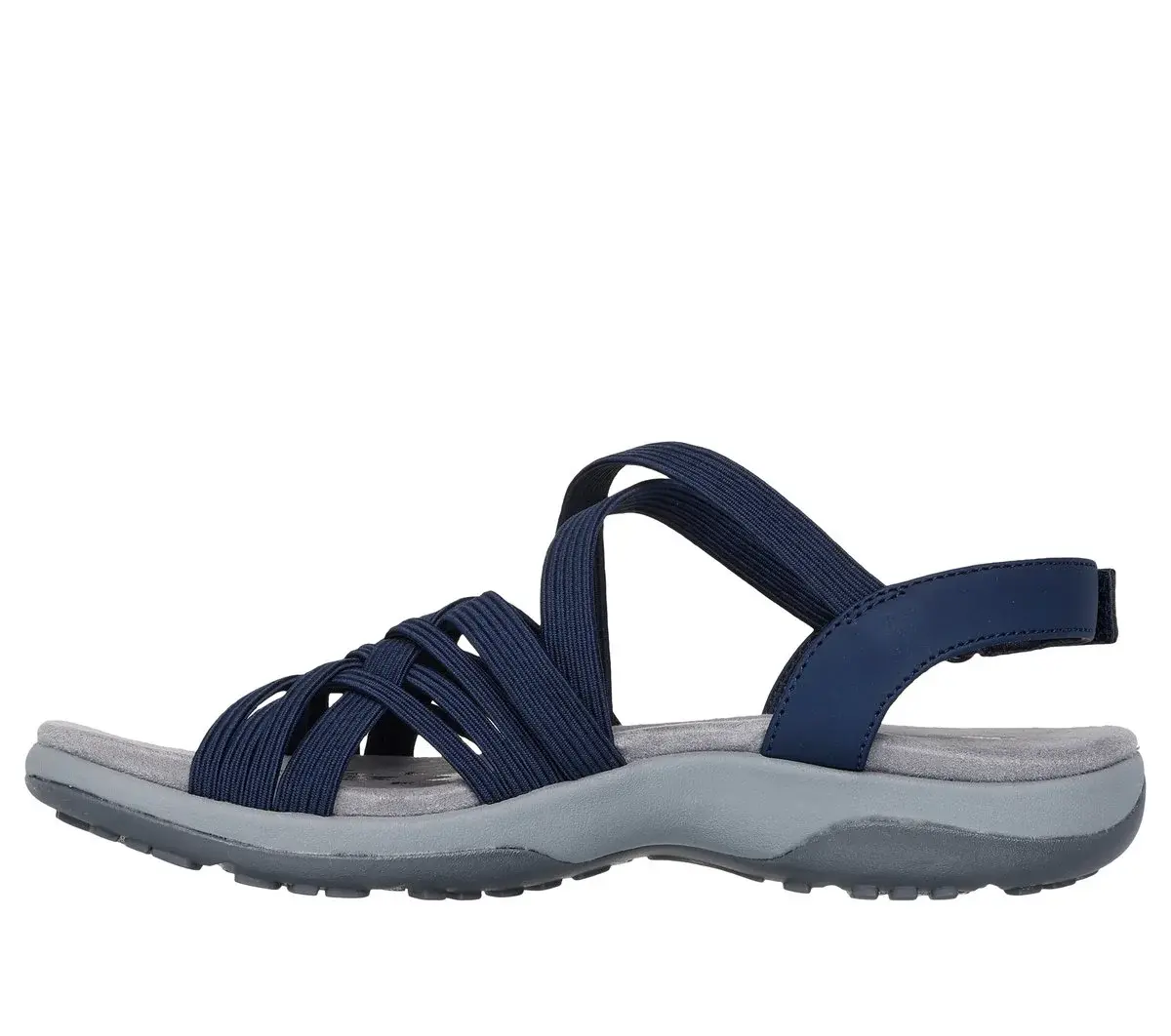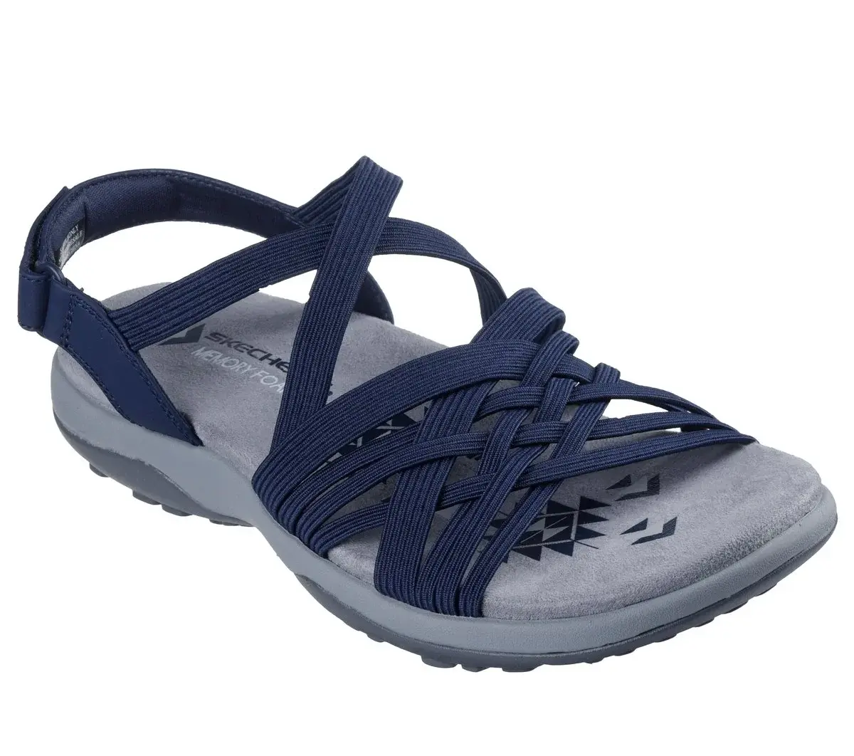 Make your style and comfort out of sight with Skechers Reggae® Slim – Summertide. This sandal features a synthetic and Stretch Fit® fabric upper with an adjustable strap, and a cushioned Skechers Memory Foam® footbed.