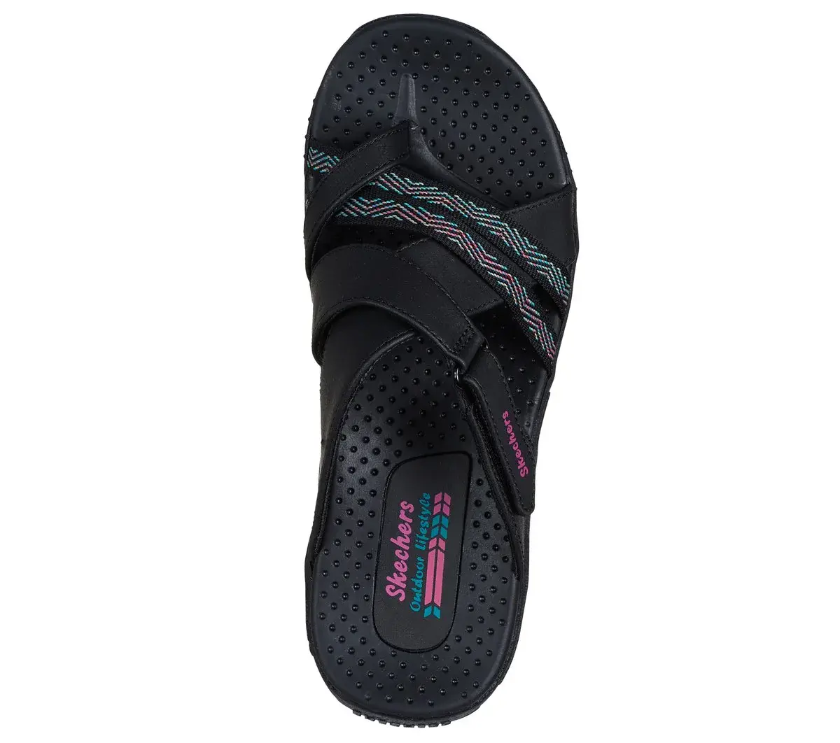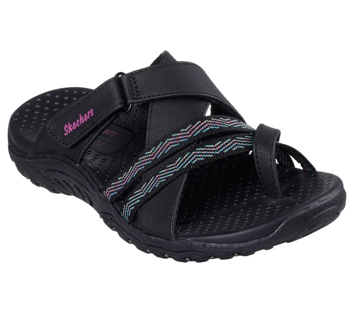 Explore the great outdoors in boundless comfort with Skechers Reggae – Sunday Stroll. This trail slide sandal features a synthetic and woven fabric upper with a cushioned comfort footbed.