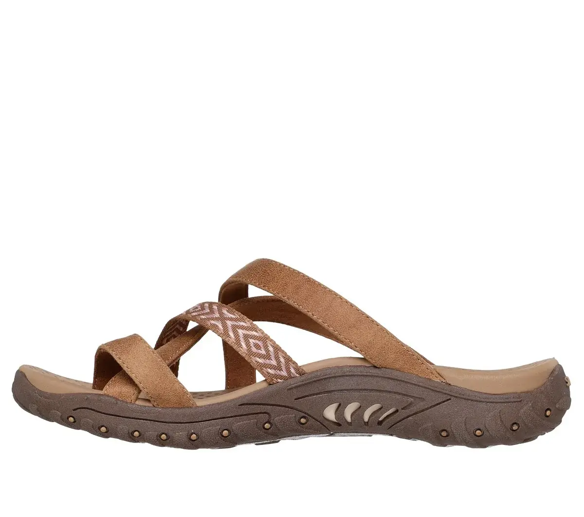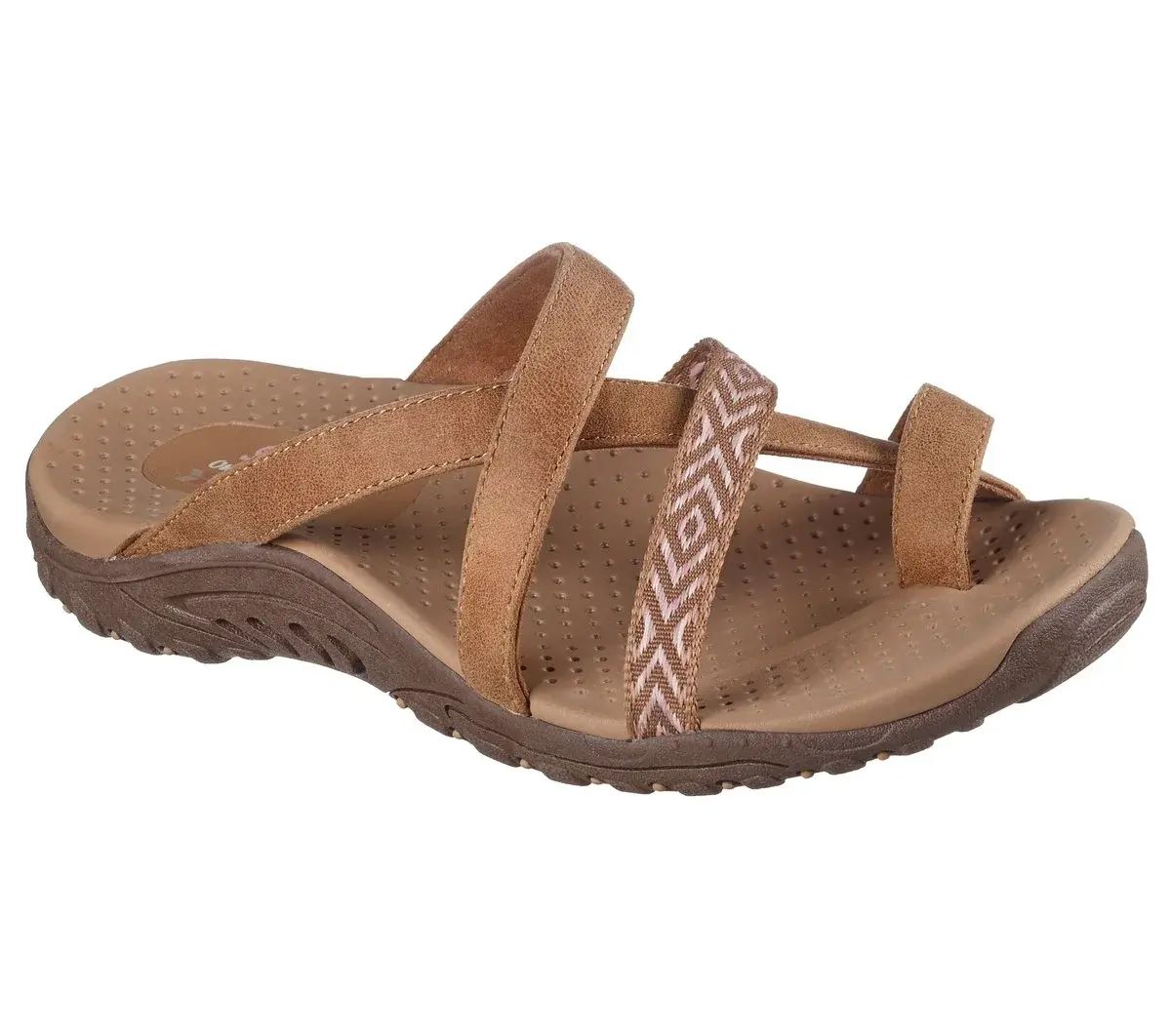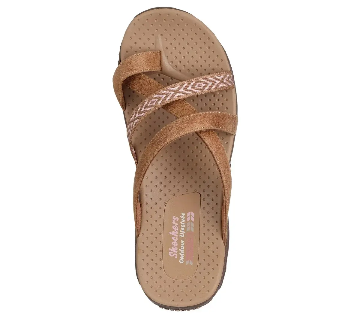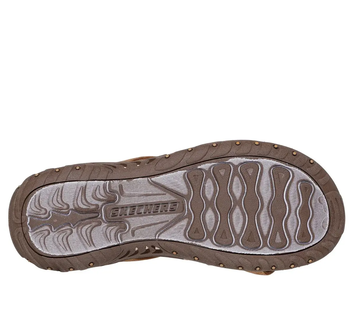 Comfort and breezy style makes a loving pair with Skechers Reggae – Timeless Summer. This outdoor trail toe loop sandal features a vegan leather and geo woven fabric upper, cushioned footbed, and a shock-absorbing Reggae midsole for added support.