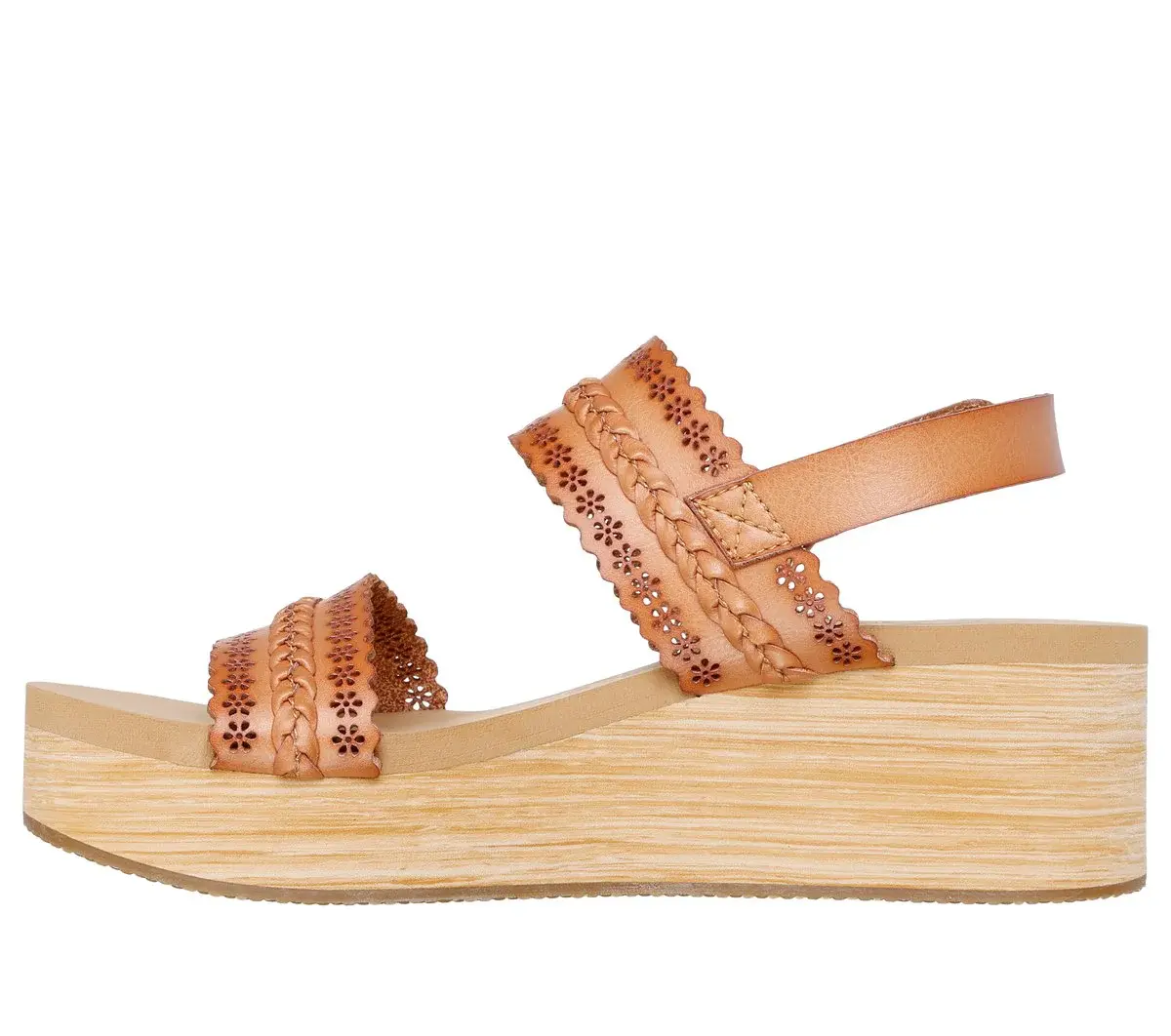 Dazzle your steps in floral style and comfort with Skechers Cali® Summers – Coastal Stroll. This vegan wedge sandal features a floral cutout synthetic upper with an adjustable back strap and a cushioned Luxe Foam® comfort footbed.