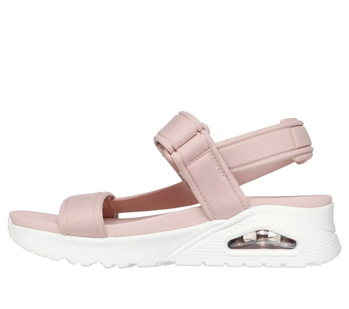 Heat up the season with style in Skechers Uno – Summer Stand2. This vegan sandal inspired from our iconic Uno silhouette features a debossed nylon upper with an adjustable slingback strap. This design is complete with a cushioned Yoga Foam® footbed and a visible Skech-Air® airbag midsole.