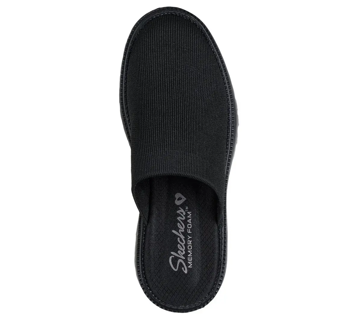 Experience the height of eco-friendly style in Skechers Cleo Brooklyn. Designed with recycled materials, this vegan open-back mule style features a Stretch Fit® ribbed knit upper and a Skechers Memory Foam™ comfort footbed. Our Planet Matters®: Good for your feet. Good for the world.®