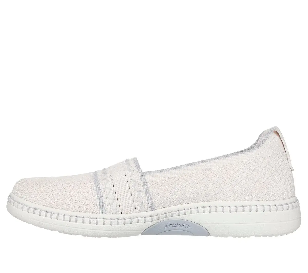 Enjoy walks in long-lasting comfort with Skechers Arch Fit Inspire – Sicily. This Stretch Fit® vegan skimmer has been granted the APMA Seal of Acceptance and features a two-tone engineered knit upper in a laceless fit, lightweight ULTRA GO® cushioning, and a removable Arch Fit® insole.