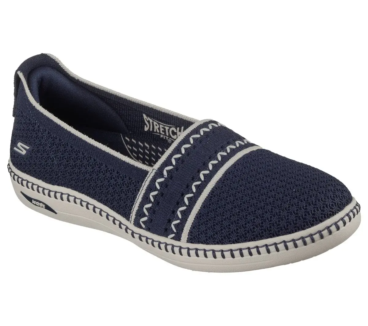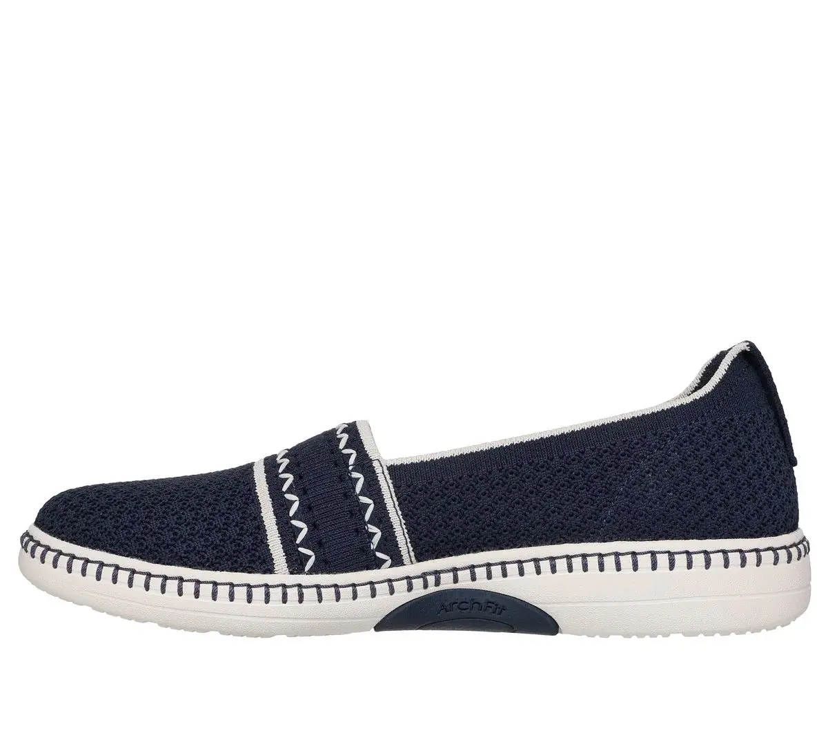 Enjoy walks in long-lasting comfort with Skechers Arch Fit Inspire – Sicily. This Stretch Fit® vegan skimmer has been granted the APMA Seal of Acceptance and features a two-tone engineered knit upper in a laceless fit, lightweight ULTRA GO® cushioning, and a removable Arch Fit® insole.