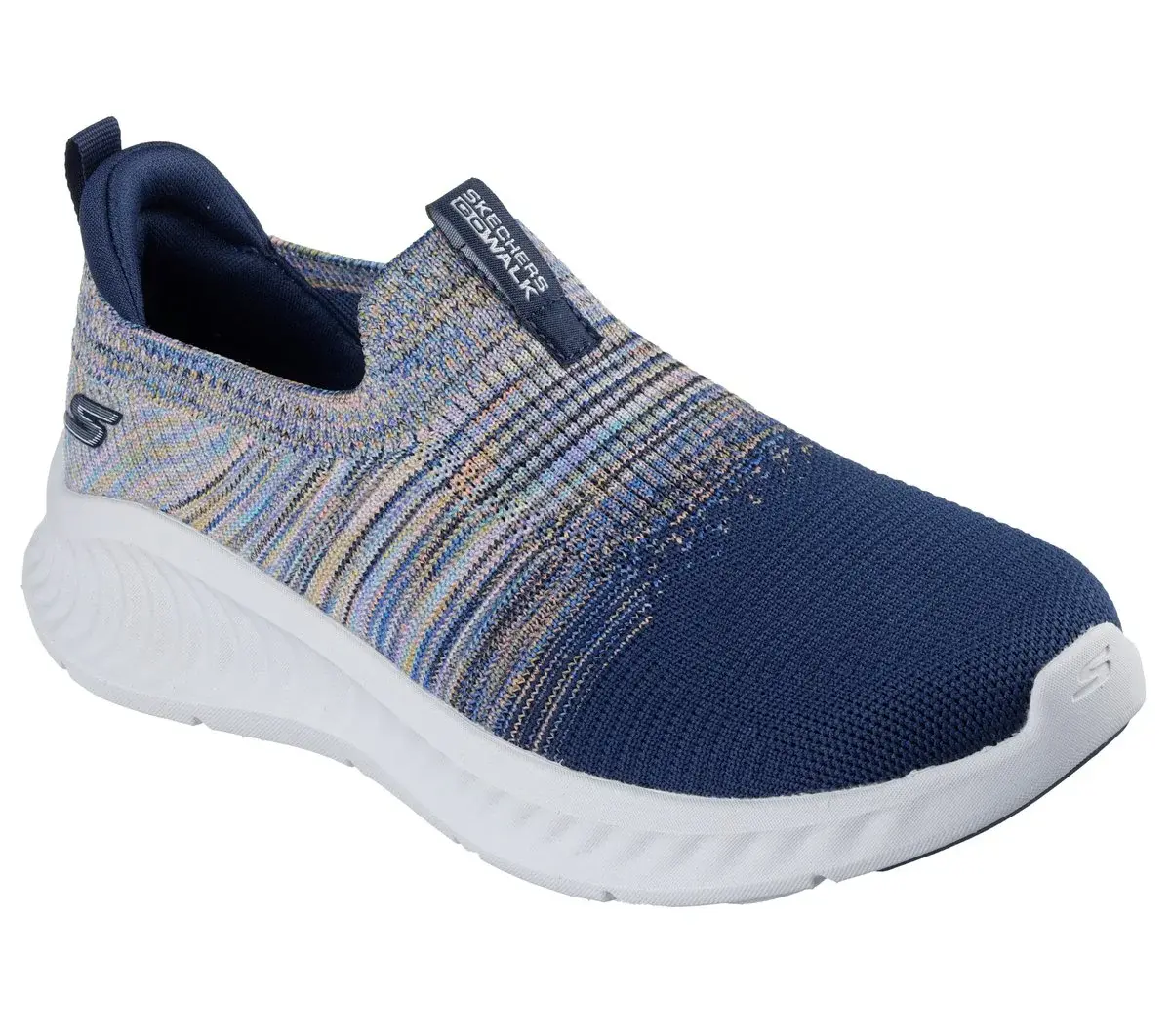 Walk anywhere and everywhere in ultimate comfort wearing Skechers GO WALK Now™ – Trisha. This vegan walking design features an ombré stretch knit upper in a laceless fit, a Skechers Air-Cooled Goga Mat™ insole, and responsive ULTRA LIGHT midsole cushioning.