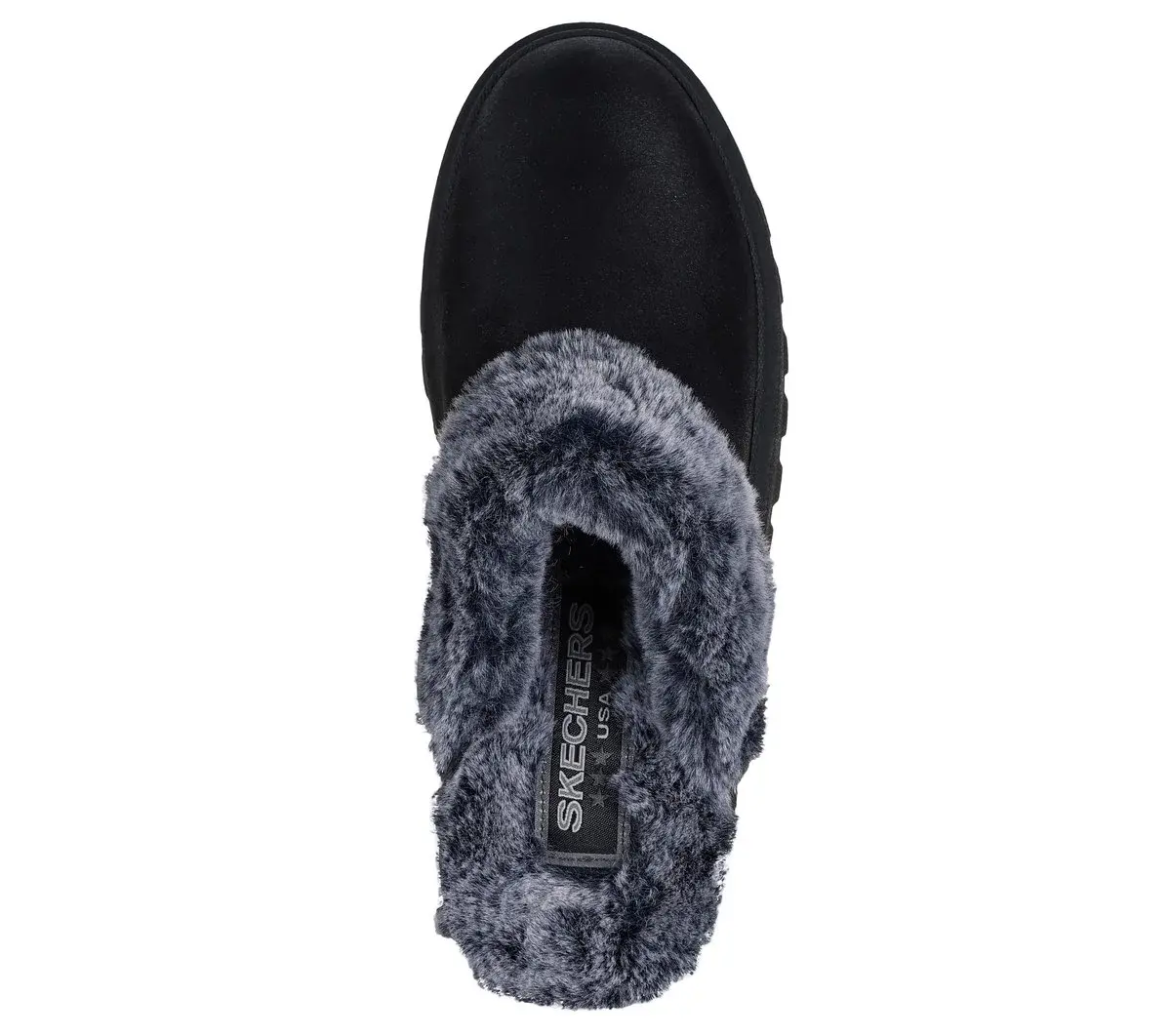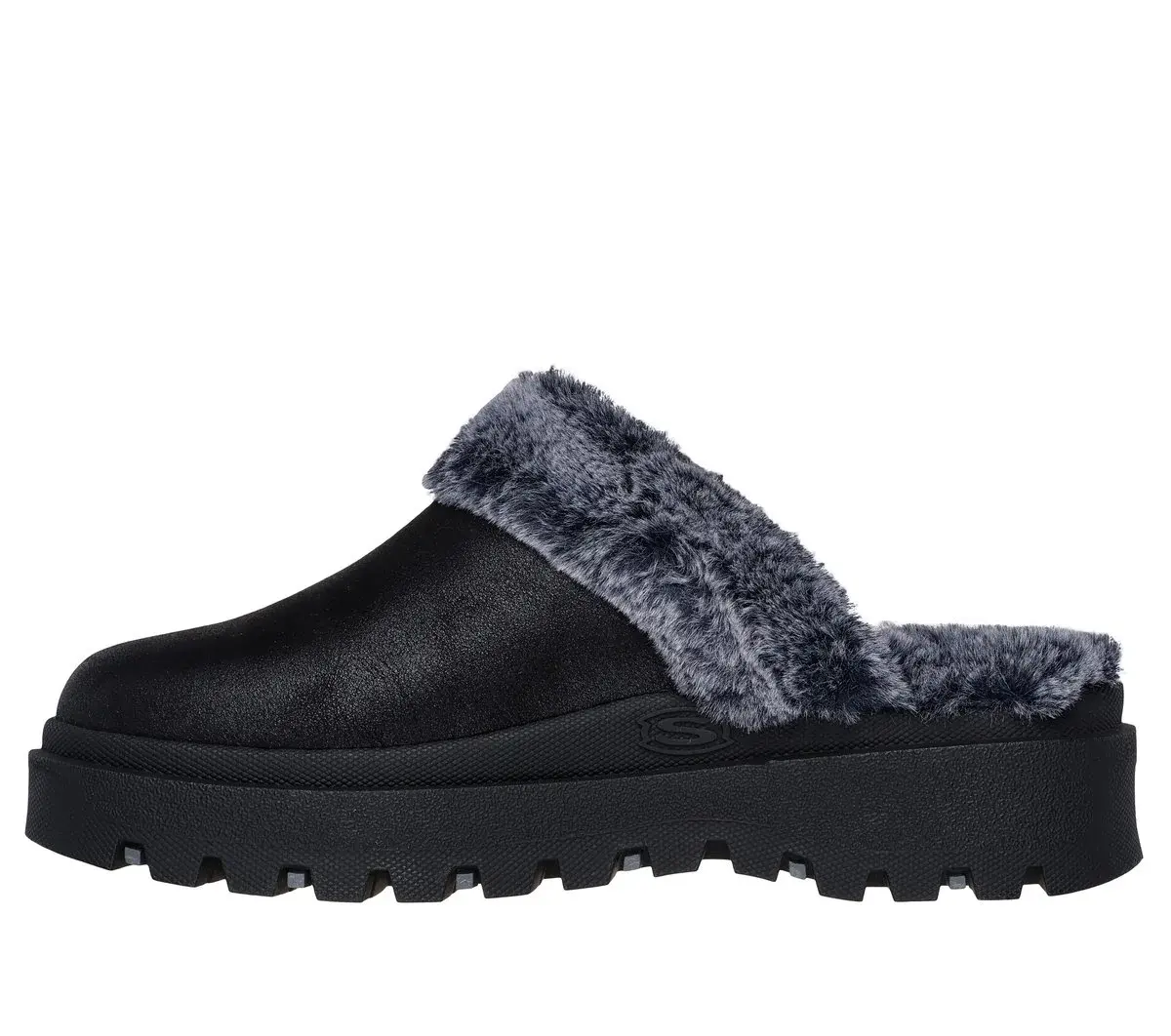 Stay cozy and comfortable all season in Skechers Shindigs – Comfyy! This vegan open-back clog design features a distressed leather-look textile upper with faux-fur trim and lining, platform midsole, and a cushioned Skechers Memory Foam™ insole.